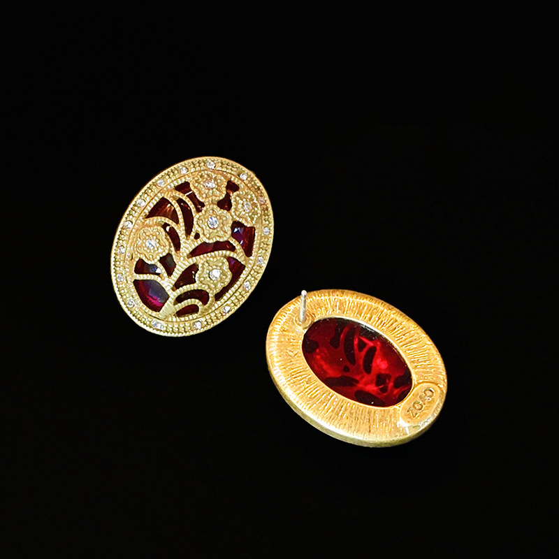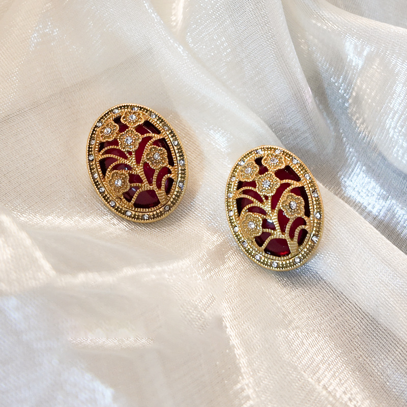 Retro Luxury Flower Hollow Design With Glass Inlaid Earrings